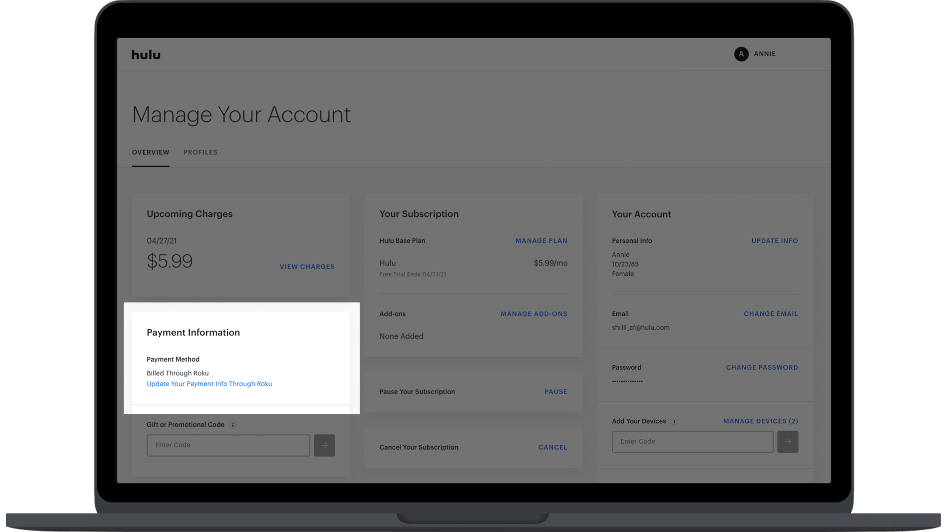 Managing A Roku Billed Hulu Account